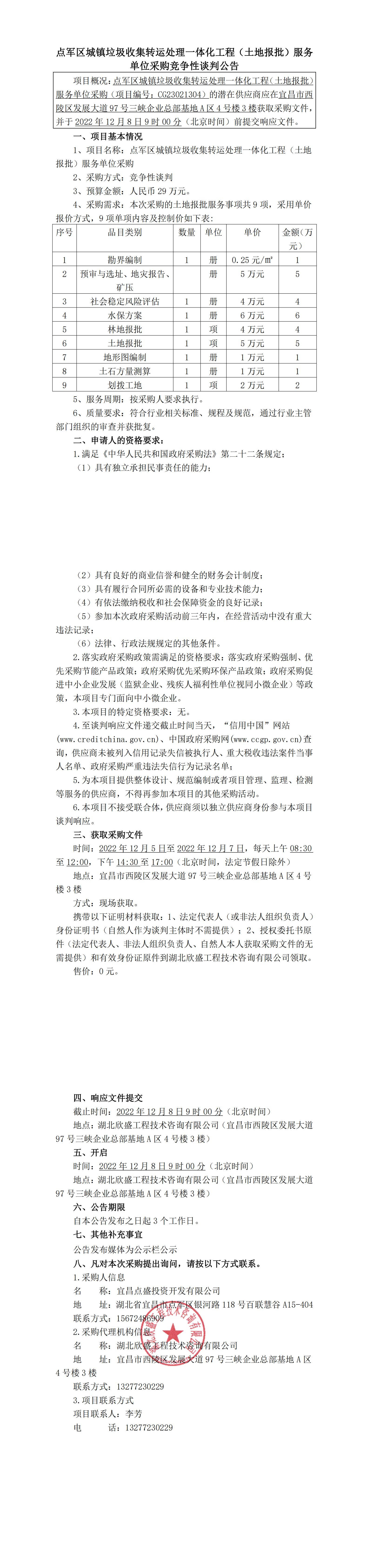 點(diǎn)軍區(qū)城鎮(zhèn)垃圾收集轉(zhuǎn)運(yùn)處理一體化工程(土地報批)服務(wù)單位采購競爭性談判公告