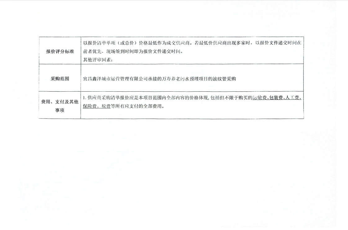 萬壽養(yǎng)老污水預埋波紋管采購詢價公告