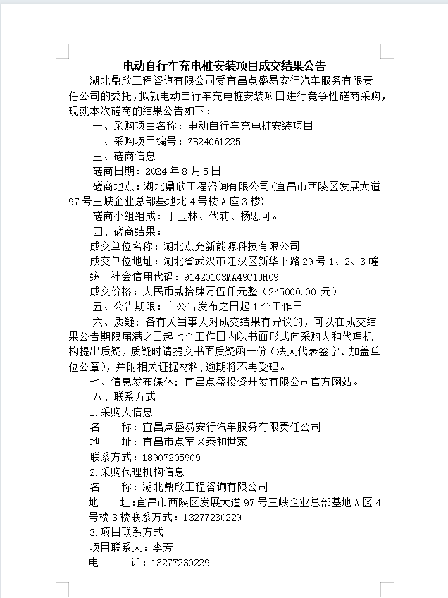電動(dòng)自行車(chē)充電樁安裝項(xiàng)目成交結(jié)果公告
