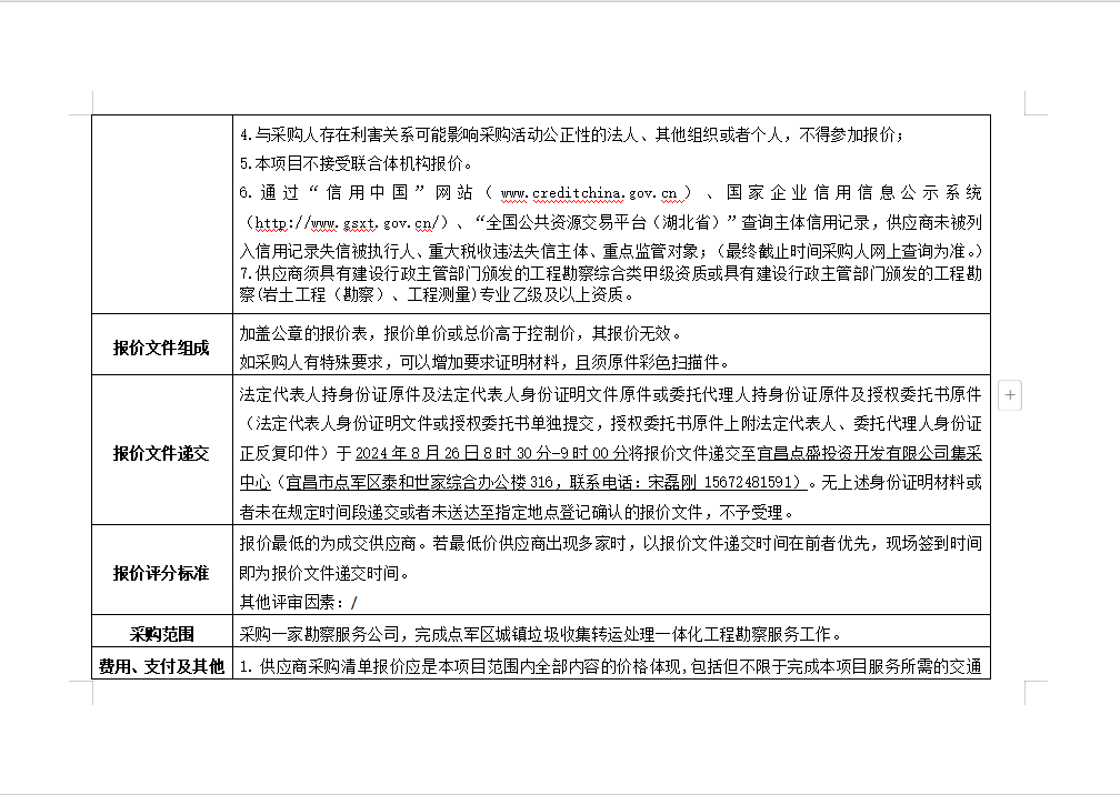 點軍區(qū)城鎮(zhèn)垃圾收集轉(zhuǎn)運處理一體化工程勘察服務詢價公告