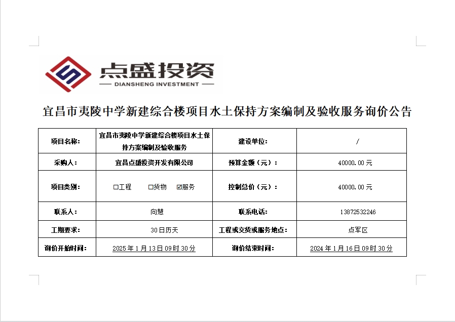 宜昌市夷陵中學新建綜合樓項目水土保持方案編制及驗收服務詢價公告